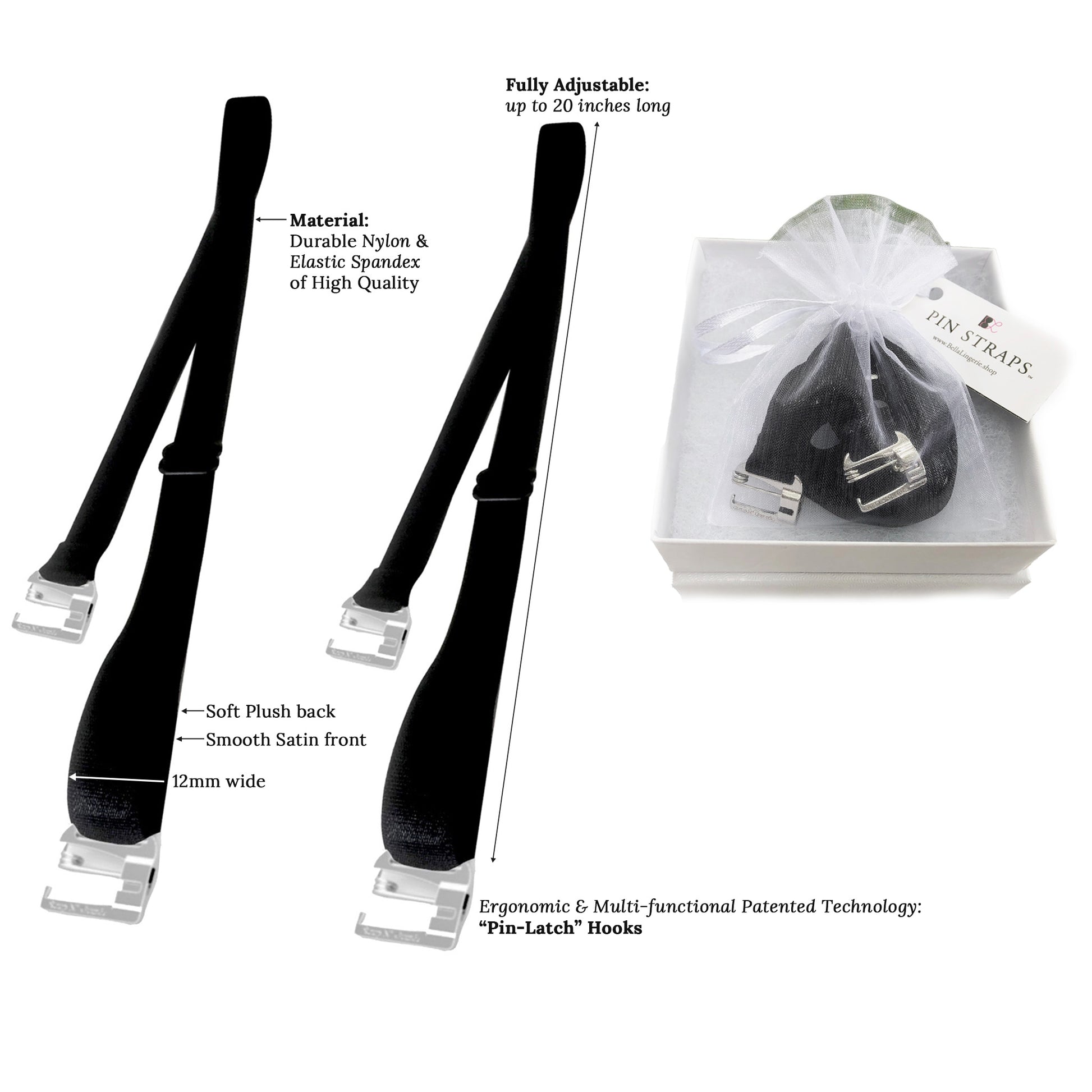 All straps by Pin StrapsTM are designed with our patented "pin-latch" hook technology, providing new functionality to save you time, money and help expand your styling options with your entire wardrobe, all while giving you the ultimate support and new fashion solutions.