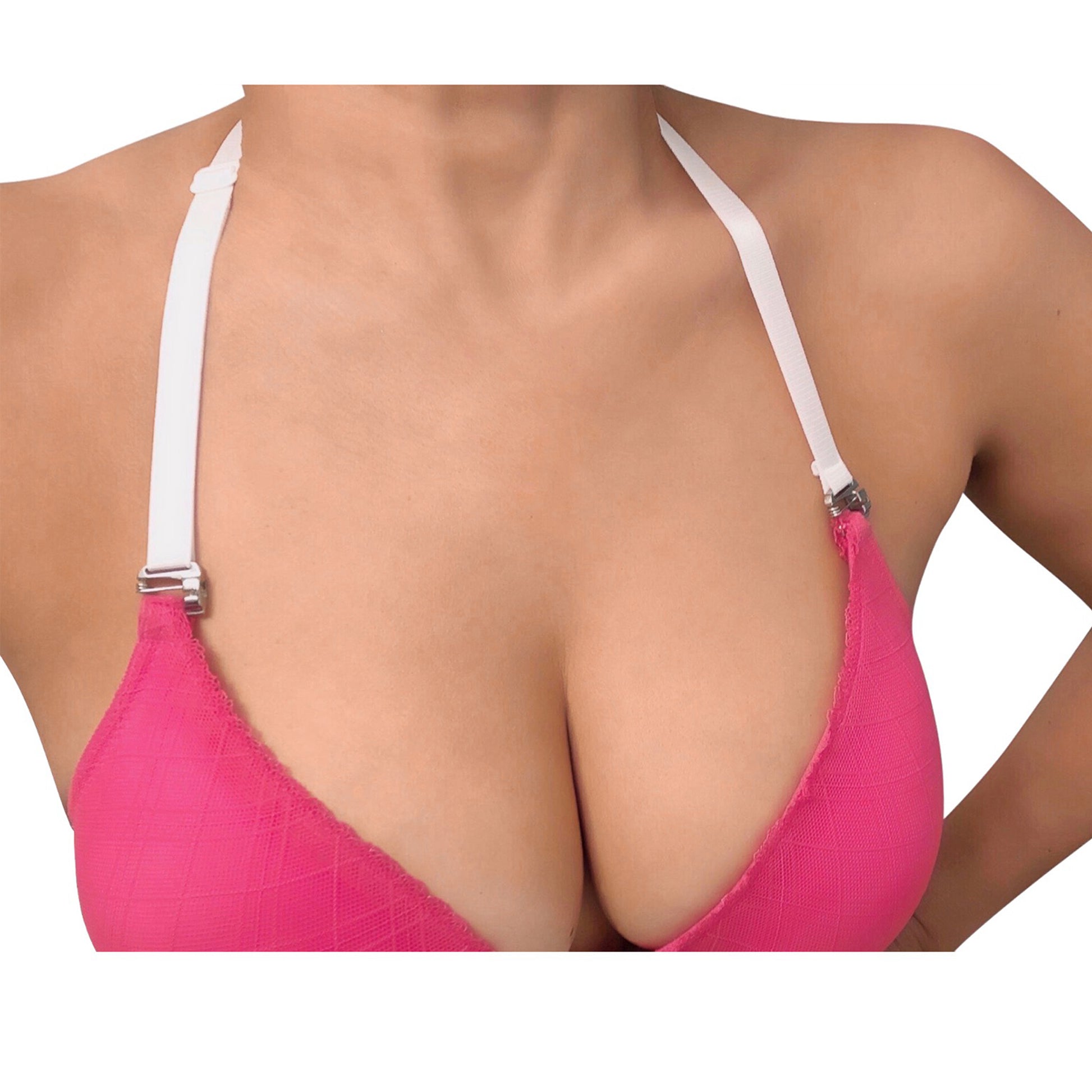 Unlike other straps, you can Hook On and Pin On instantly, discreetly, and securely to use with all your outfits without needing bra loops (no sewing), using our straps' one-of-a-kind "pin-latch" hooks.