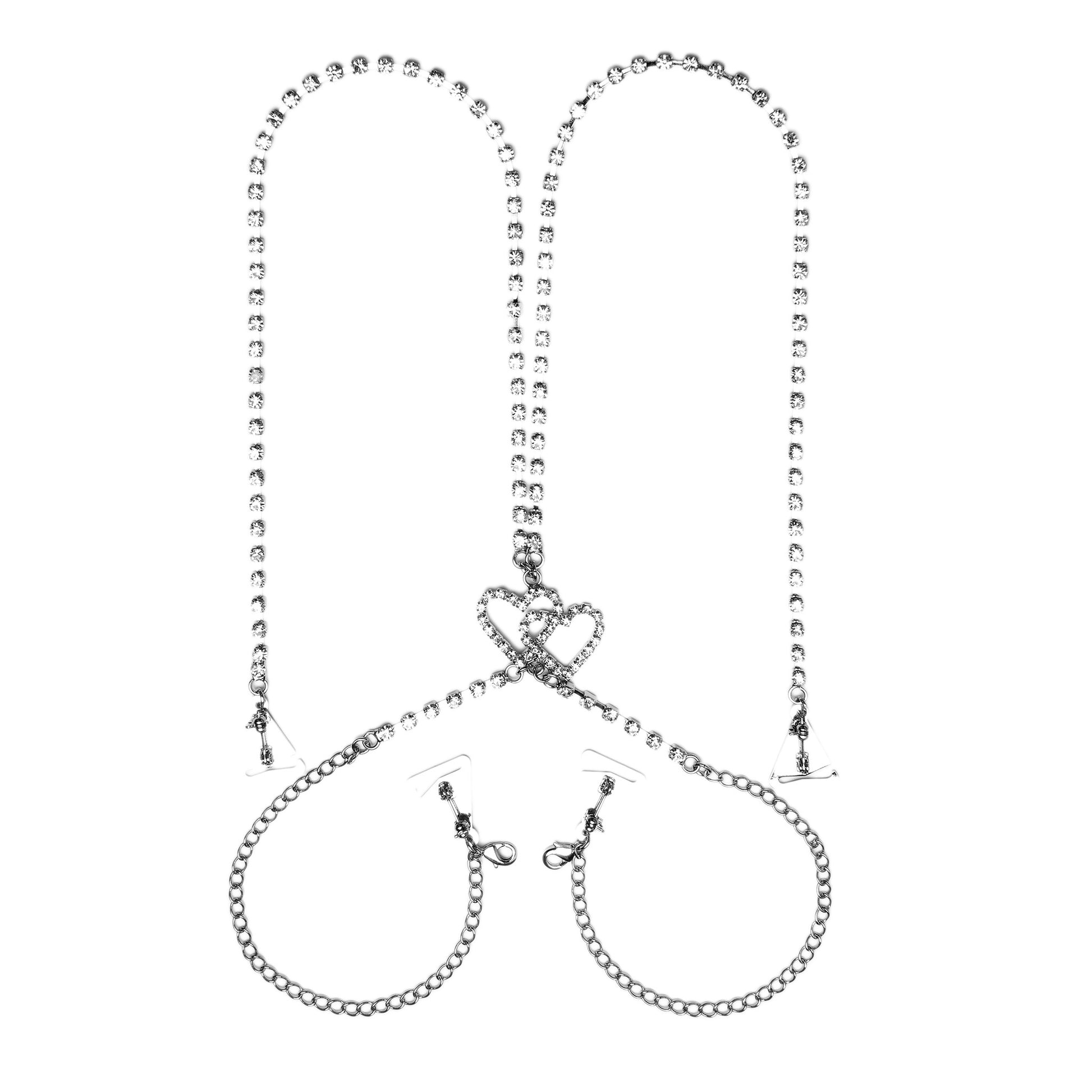 (Draping Back) Joined Hearts (Silver) Rhinestone Dress Straps