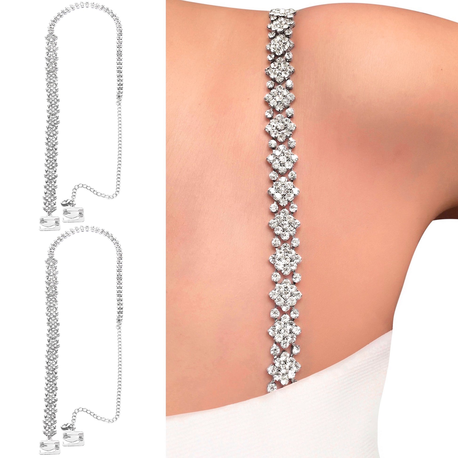Get 2 Diamond Style (Silver) Rhinestone Dress Straps by PIN STRAPSTM that are adjustable, detachable and adds a beautiful look to your outfit while providing ultimate security to your garments.